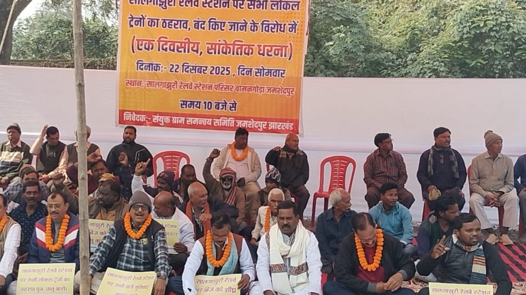 Salgajhari Train Protest: जमशेदपुर के सलगांझरी रेलवे स्टेशन पर लोकल ट्रेनों के ठहराव की मांग को लेकर मंगलवार को एकदिवसीय धरना-प्रदर्शन किया गया। यह धरना संयुक्त ग्राम सामान्य समिति, जमशेदपुर के बैनर तले आयोजित हुआ, जिसमें बड़ी संख्या में स्थानीय ग्रामीणों और क्षेत्रवासियों ने भाग लेकर अपनी नाराजगी जाहिर की। धरना-प्रदर्शन के दौरान समिति के […]