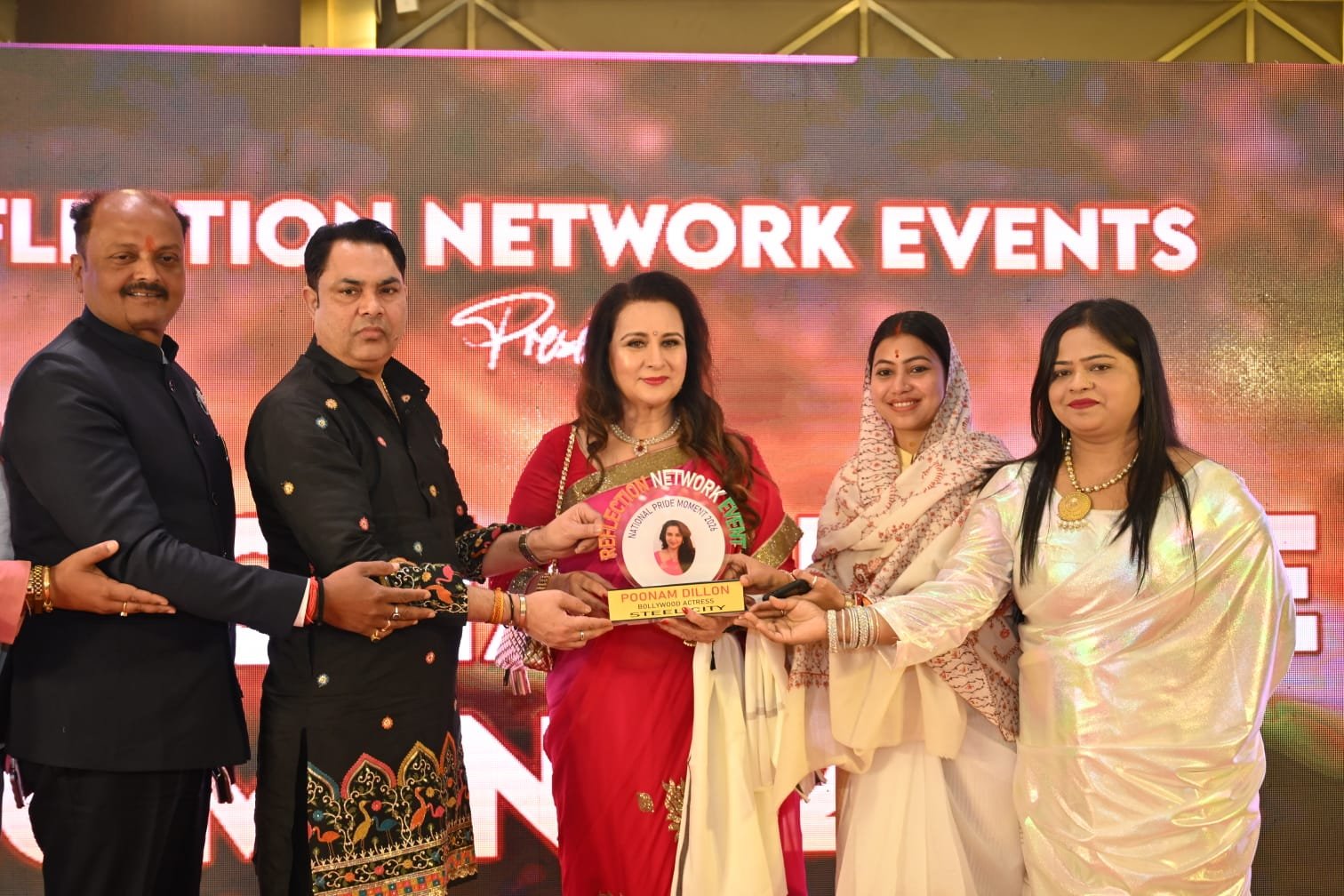 Poonam Dhillon Honors: रिफ्लेक्शन नेटवर्क इवेंट्स द्वारा आयोजित नेशनल प्राइड मोमेंट का भव्य कार्यक्रम जमशेदपुर के गोलमुरी स्थित एक होटल में गरिमामयी वातावरण में संपन्न हुआ। इस विशेष अवसर पर बॉलीवुड की प्रसिद्ध अभिनेत्री पूनम ढिल्लन मुख्य रूप से उपस्थित रहीं, जिनकी मौजूदगी ने कार्यक्रम को खास बना दिया। कार्यक्रम
