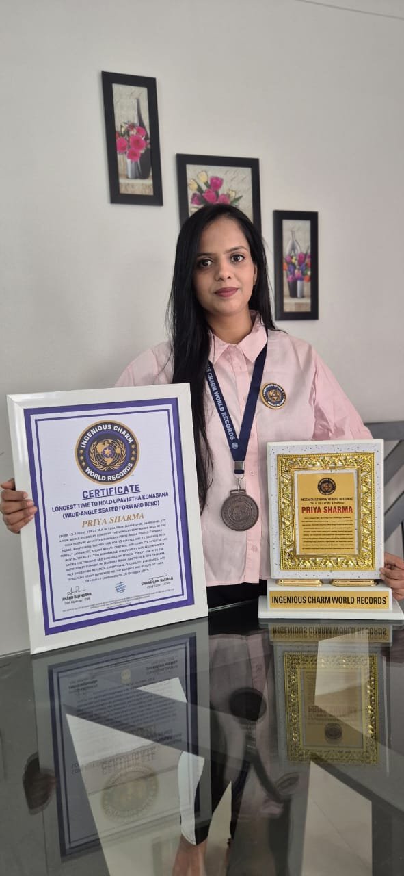 प्रिया ने बताया कि रिकॉर्ड बनाने की तैयारी में उन्होंने लगातार दो महीने तक गहन अभ्यास, सही पोषण और फॉर्म पर विशेष ध्यान दिया। इस तैयारी ने उन्हें लंबे समय तक इस चुनौतीपूर्ण आसन को स्थिर रखने में सक्षम बनाया।