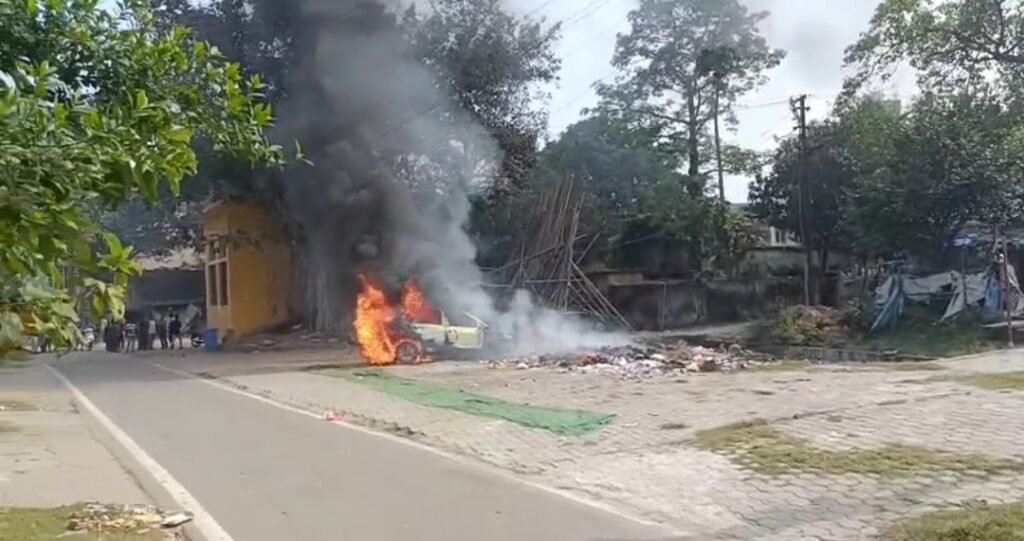 Sonari Car Blaze: जमशेदपुर के सोनारी थाना क्षेत्र अंतर्गत बुधराम मोहल्ला में मंगलवार को एक कार में अचानक आग लगने से अफरा-तफरी मच गई। घटना हनुमान मंदिर के पास की बताई जा रही है, जहां खड़ी कार से अचानक धुआं उठने लगा और देखते ही देखते कार आग के गोले में तब्दील हो गई। कार […]