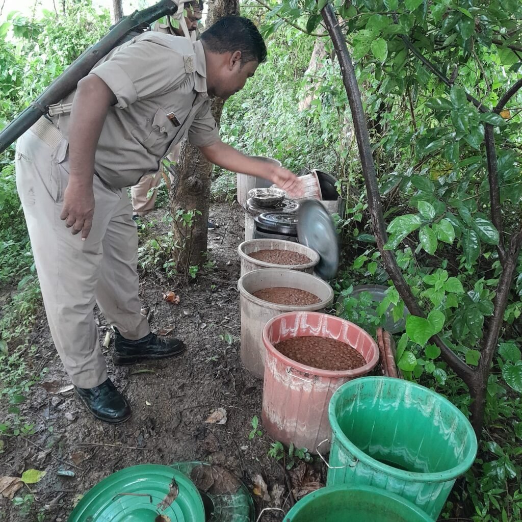 Illegal Liquor Raid: बोड़ाम में अवैध चुलाई भट्टी पर उत्पाद विभाग की छापेमारी, 1200 किलो जावा महुआ नष्ट, 32 लीटर शराब जब्त